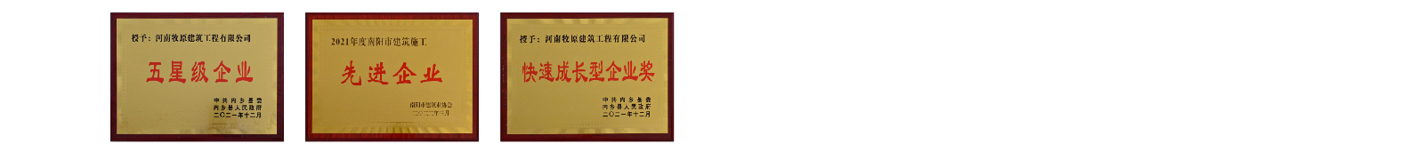 2021年,擴(kuò)大經(jīng)營,快速發(fā)展,榮獲南陽市建筑施工先進(jìn)單位、內(nèi)鄉(xiāng)縣快速成長型企業(yè)獎、內(nèi)鄉(xiāng)縣五星級企業(yè)。