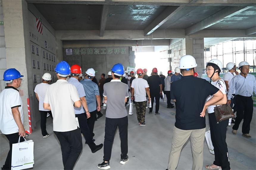 在質(zhì)量標準化觀摩區(qū),金融街項目重點展示了主體結(jié)構(gòu)實測實量、二次結(jié)構(gòu)砌筑及配管、內(nèi)墻抹灰、給排水管道安裝、水電安裝預埋、抗震支(吊)架安裝等標準化工藝樣板;樓梯封閉式支模、三段式止水螺桿、主體結(jié)構(gòu)方圓扣龍骨模板體系等應用樣板;技術(shù)質(zhì)量管理可視化交底、原材料質(zhì)量管理一碼通、質(zhì)量亮點實施方案、質(zhì)量管理口袋書、三維碰撞檢測及二次深化等質(zhì)量管理措施。在安全標準化觀摩區(qū),重點展示了揚塵治理智能化終端系統(tǒng)應用、雙重預防體系的建設(shè)與運行、安全生產(chǎn)治本攻堅三年行動落地執(zhí)行情況。觀摩人員進行了認真觀摩、拍照及提問,現(xiàn)場互動氣氛熱烈,起到了良好的觀摩效果。